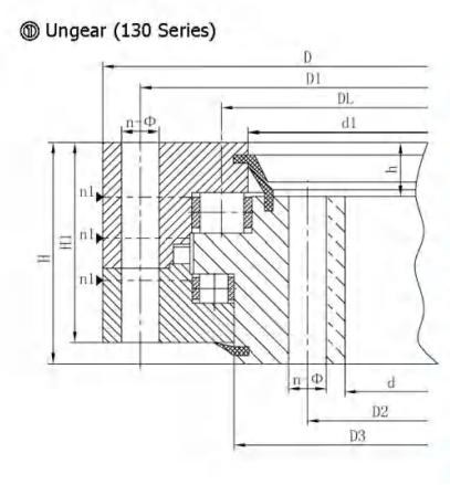 Specific parameters of130 Series Non-Gear Three-Row Roller Slewing Bearing are as follows: