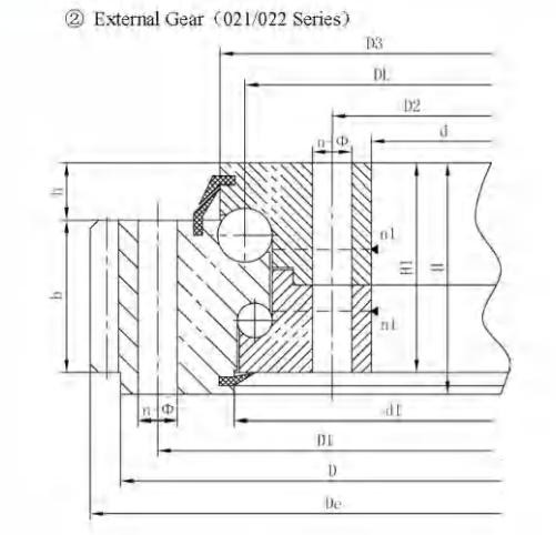 Double row ball slewing bearing has three seat ring, the steel ball and the spacing block can bedirectly arrange into the upper and lower races, two rows of upper and lower steel balls withdifferent diameter are fitted according to the stress condition.This kind of open assembly is very convenient, for the upper and lower bear raceway arc anglesis 90°,which can bear large axial forces and tilting moment. When the radial force is greaterthan 0.1 times the axial force need to be specially designed the raceway.Double row different ball slewing bearing's axial and radial size are relatively large and solid instructure, so it is specially suitable for the medium diameter tower cranes, truck mountedcranes etc. loading and unloading machinery.