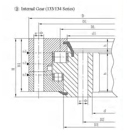 Internal Gear 133/1 34 Series Three Row Roller Slewing Bearing are as follows: