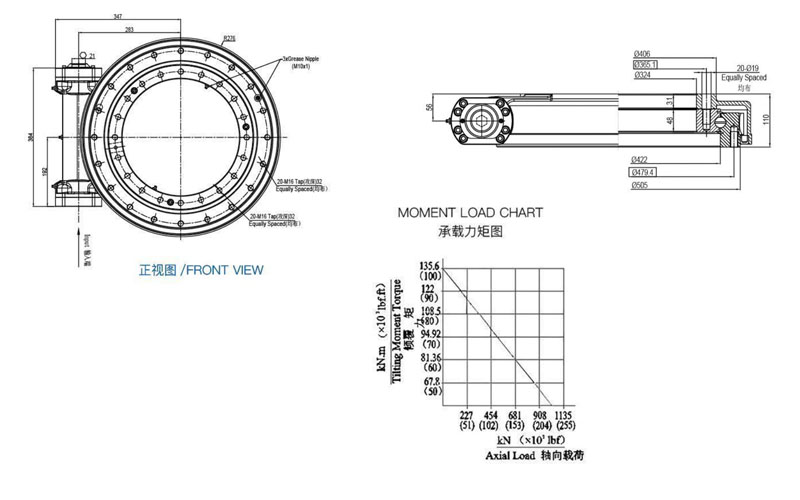 The SEA17 slewing drive is larger than the SEA14 model. Its axial load capacity, radial load capacity, and overturning moment capacity are approximately twice that of the SEA14. It is suitable for heavy-duty machinery such as cranes and excavators.| Slewing drive performance parameters | |||||||